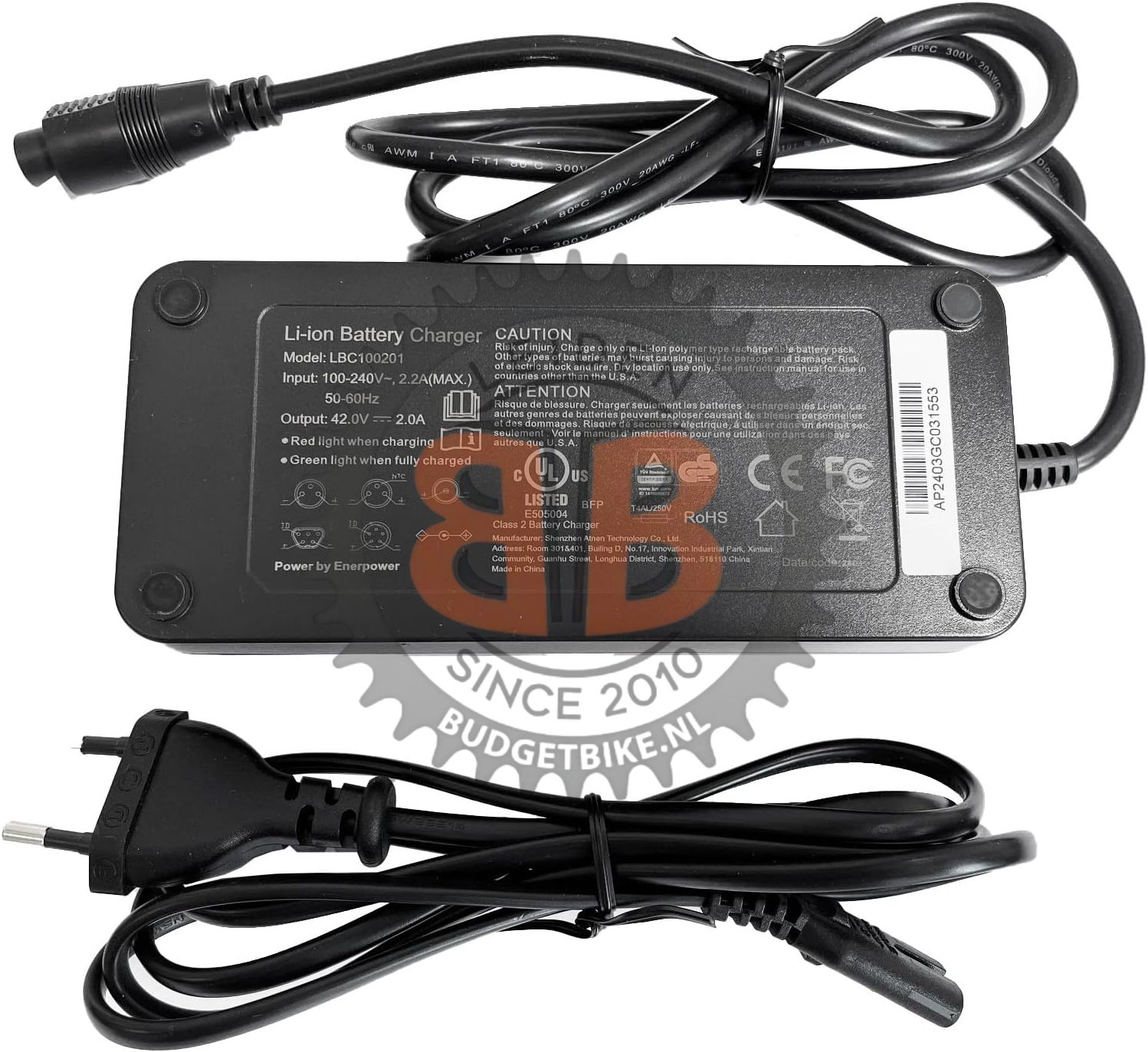 Deze 36V e-bike oplader 5-polig rond met 42V uitgang en 2A laadstroom