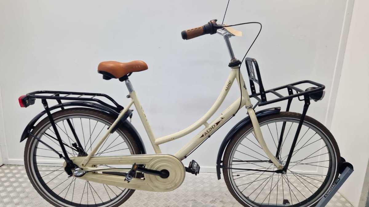 Stevige Aldo Cargo kinder transportfiets in fris groen. Deze betrouwbare fiets is voorzien van een terugtraprem en een gesloten kettingkast, wat zorgt voor veilig en onderhoudsarm rijden. Met een handig ringslot blijft je fiets goed beveiligd. De 20 inch wielen en het comfortabele frame van 24 cm maken deze fiets perfect voor jonge fietsers die een degelijke en praktische transportfiets zoeken.