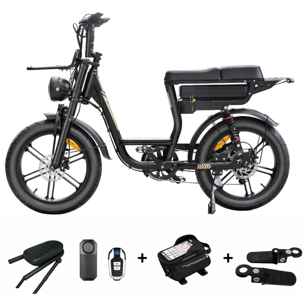 Wat de V20 Comfort fatbike uniek maakt, is de combinatie van gemak en innovatie. De lage instap maakt het op- en afstappen van de fiets eenvoudig, terwijl de dubbele achtervering zorgt voor een stabiele rit op elk terrein. De V20 Comfort Pro fatbike is ideaal voor rijders die waarde hechten aan veiligheid en gemak. Het frame van carbon staal is niet alleen stevig, maar ook mooi afgewerkt. De brede banden geven grip op elk oppervlak, van asfalt tot grind. Zo rijd je fijn op stedelijke wegen, maar ook op onverharde paden.
